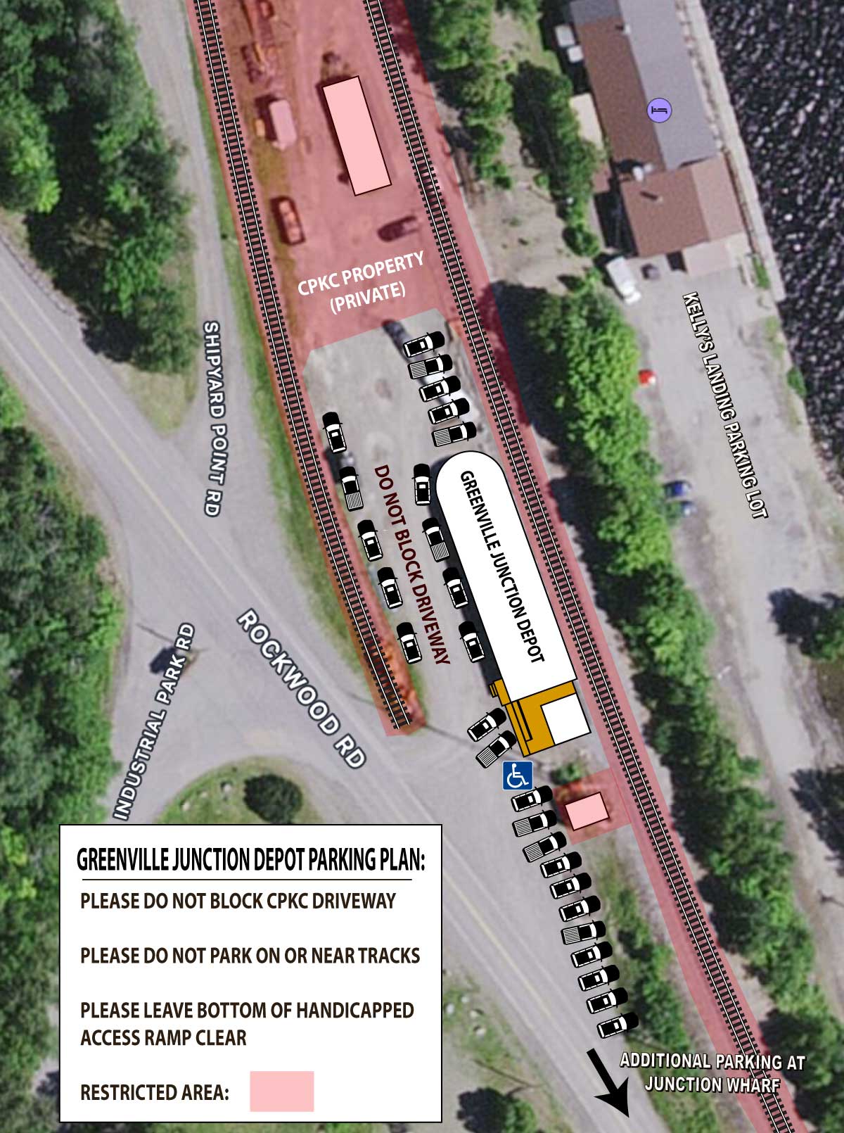 The Depot is on an active rail line owned by the CPKC railroad. All railroad property and facilities including the tracks, adjacent buildings, equipment, roadways, driveways, and walkways are strictly off-limits. Bathrooms in the depot are winterized in the off season.