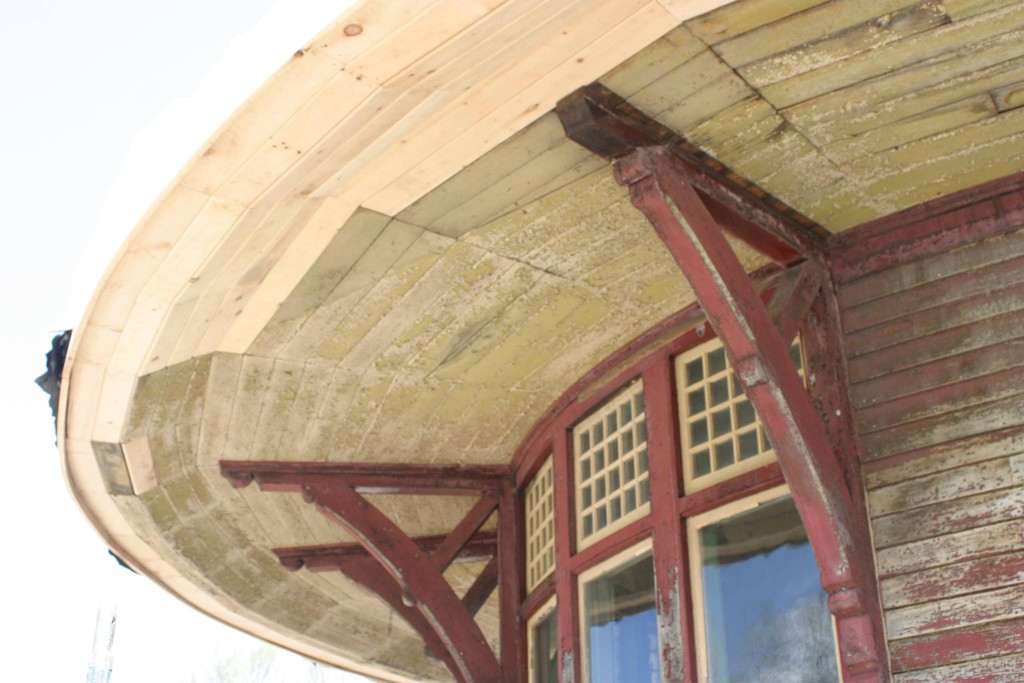 The eave restoration campaign ran from 2014-2015 and raised over $10,000 needed to hire Old House Restorations to restore the eaves around the “Witches Hat” portion of the depot. This profile had been modified in the mid 1900’s to allow clearance for a track that was being run close to the depot which would allow boxcars to be spotted on the road side of the freight house portion of the structure. The profile, now restored, brings the depot one step closer to completion and coupled with the leveling that occurred last summer really makes the old depot start to look new again!