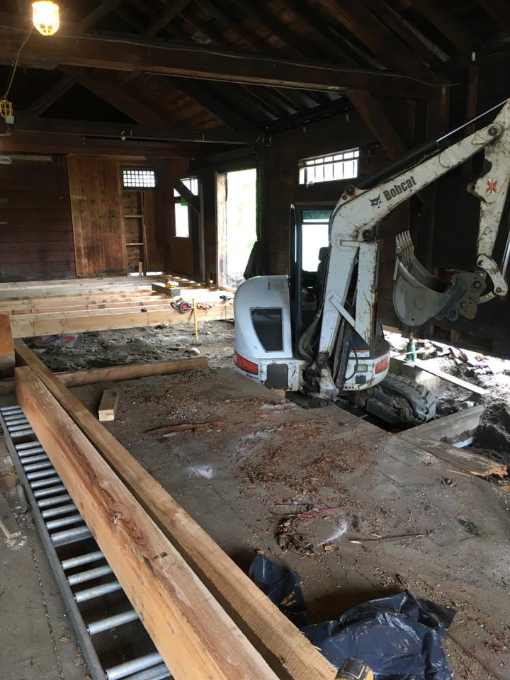 Inside the depot, the floor was shore up, leveled and a sub floor installed awaiting future flooring.